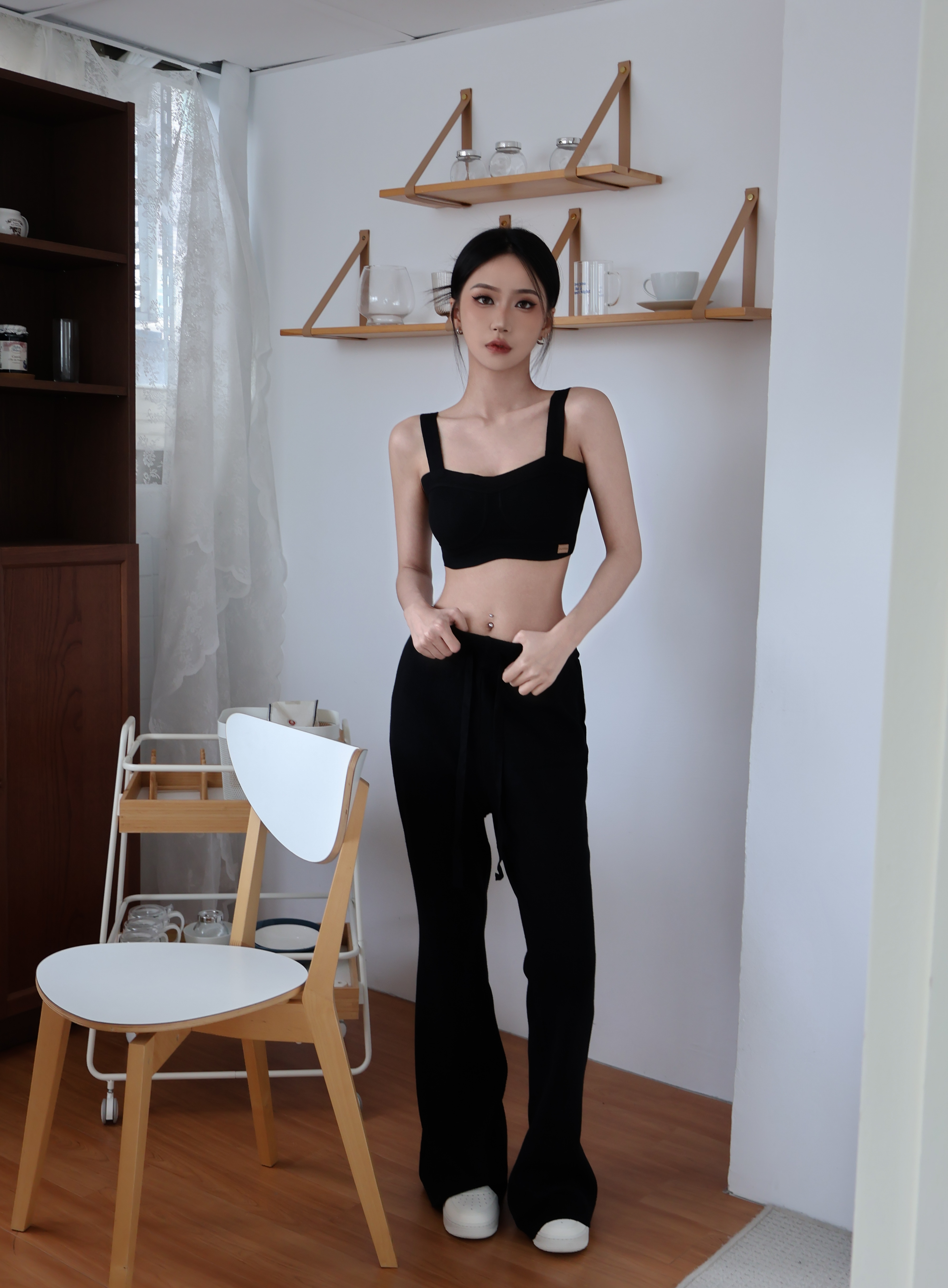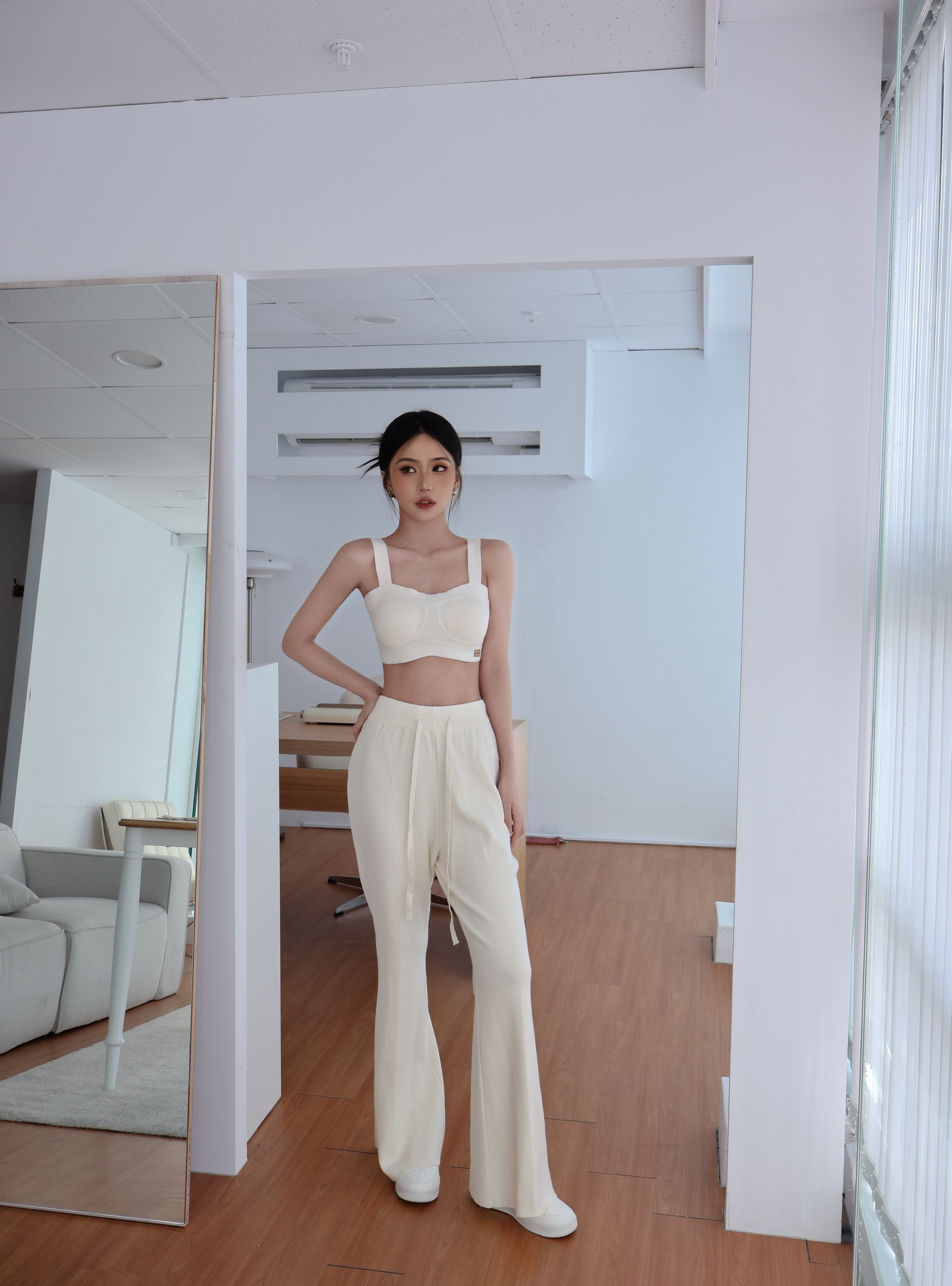 針織鬆緊喇叭褲