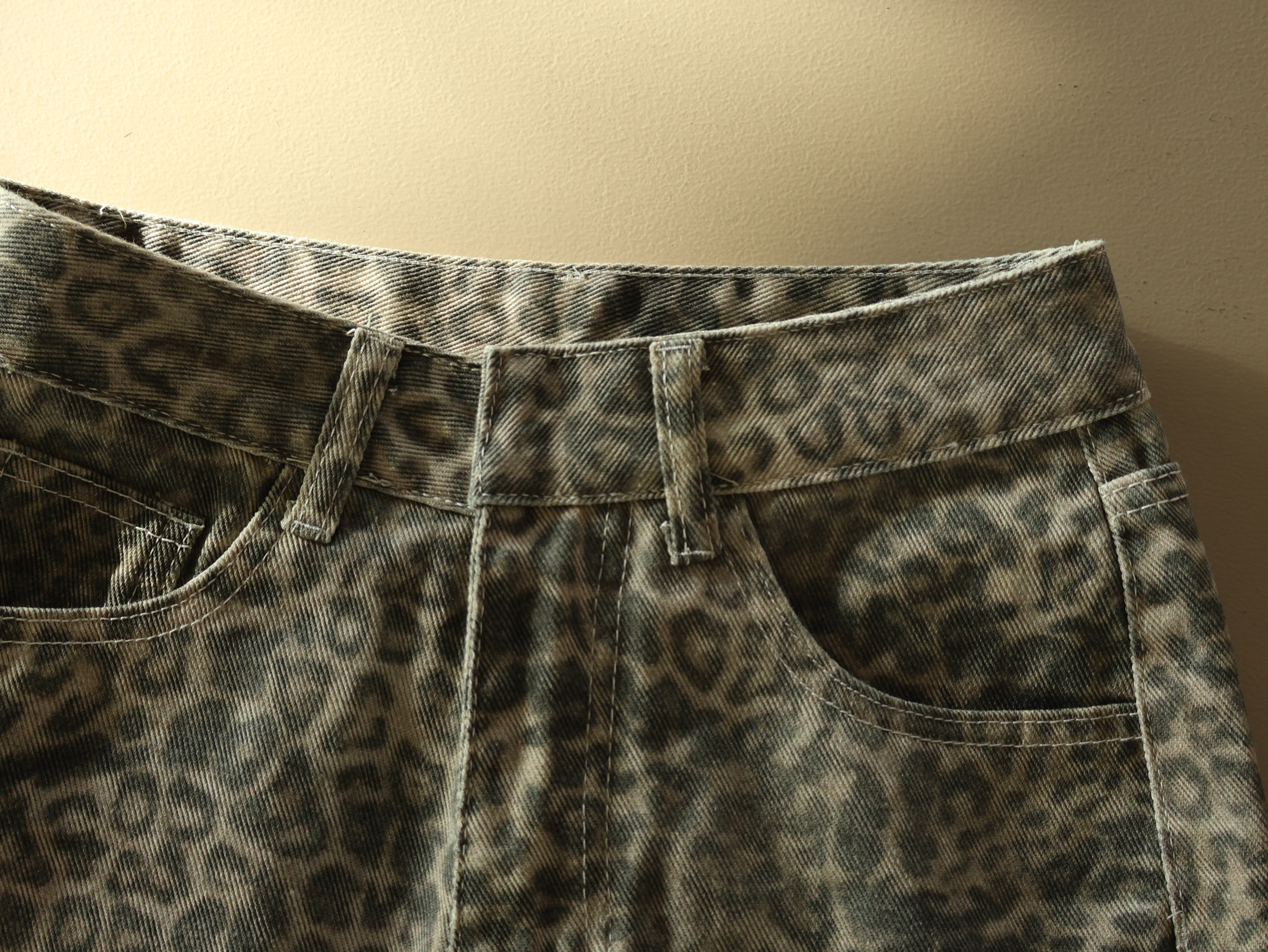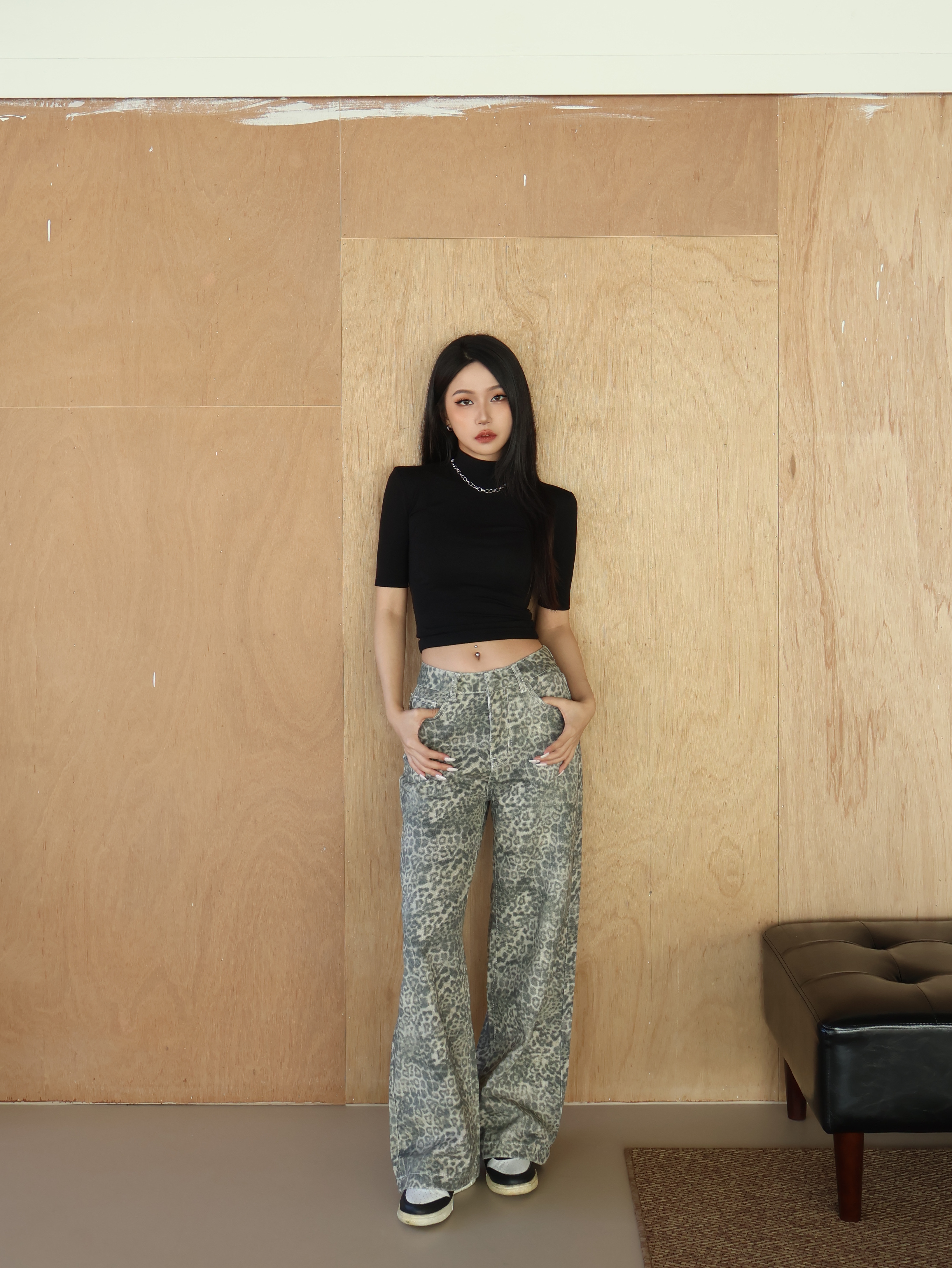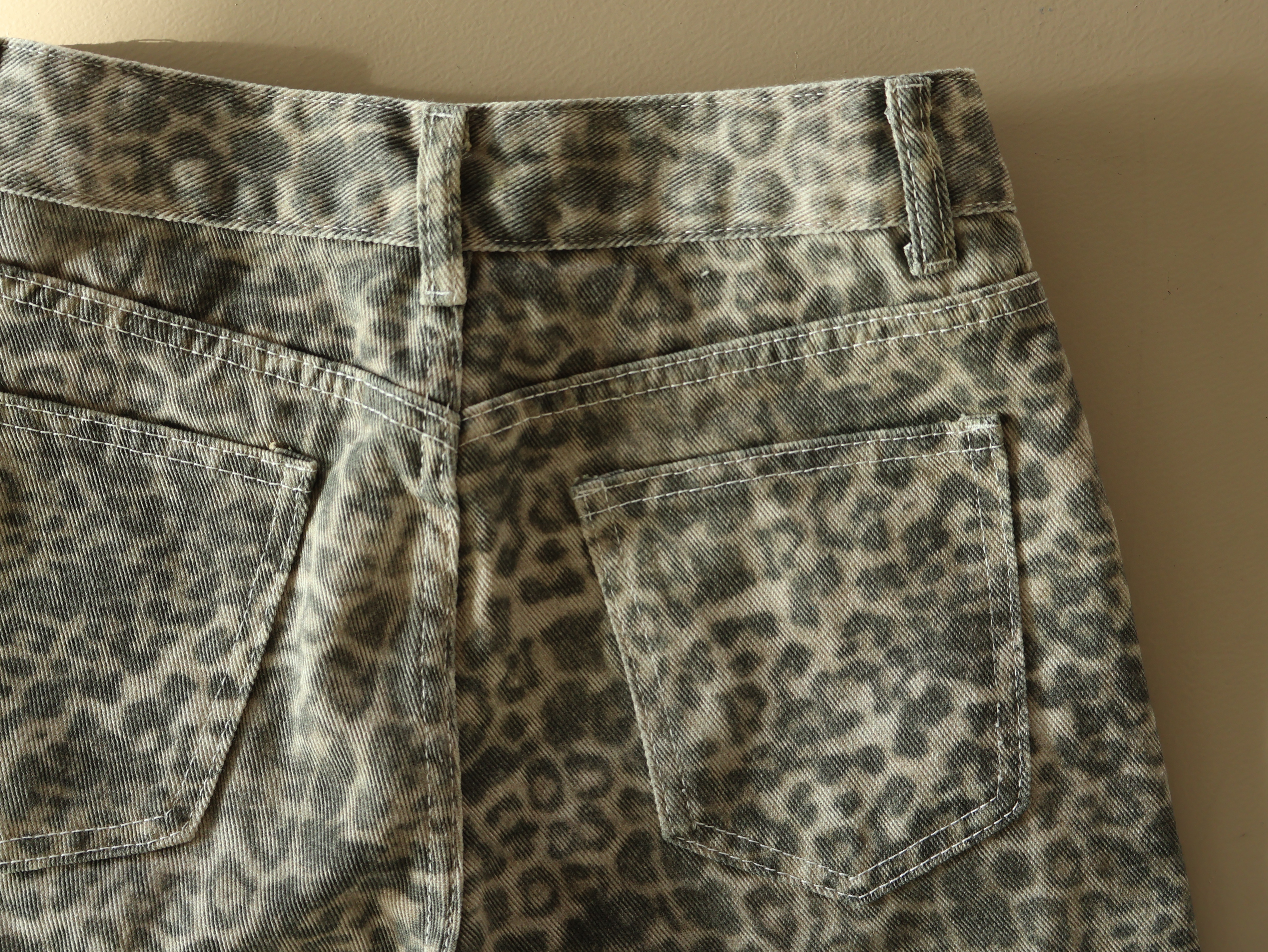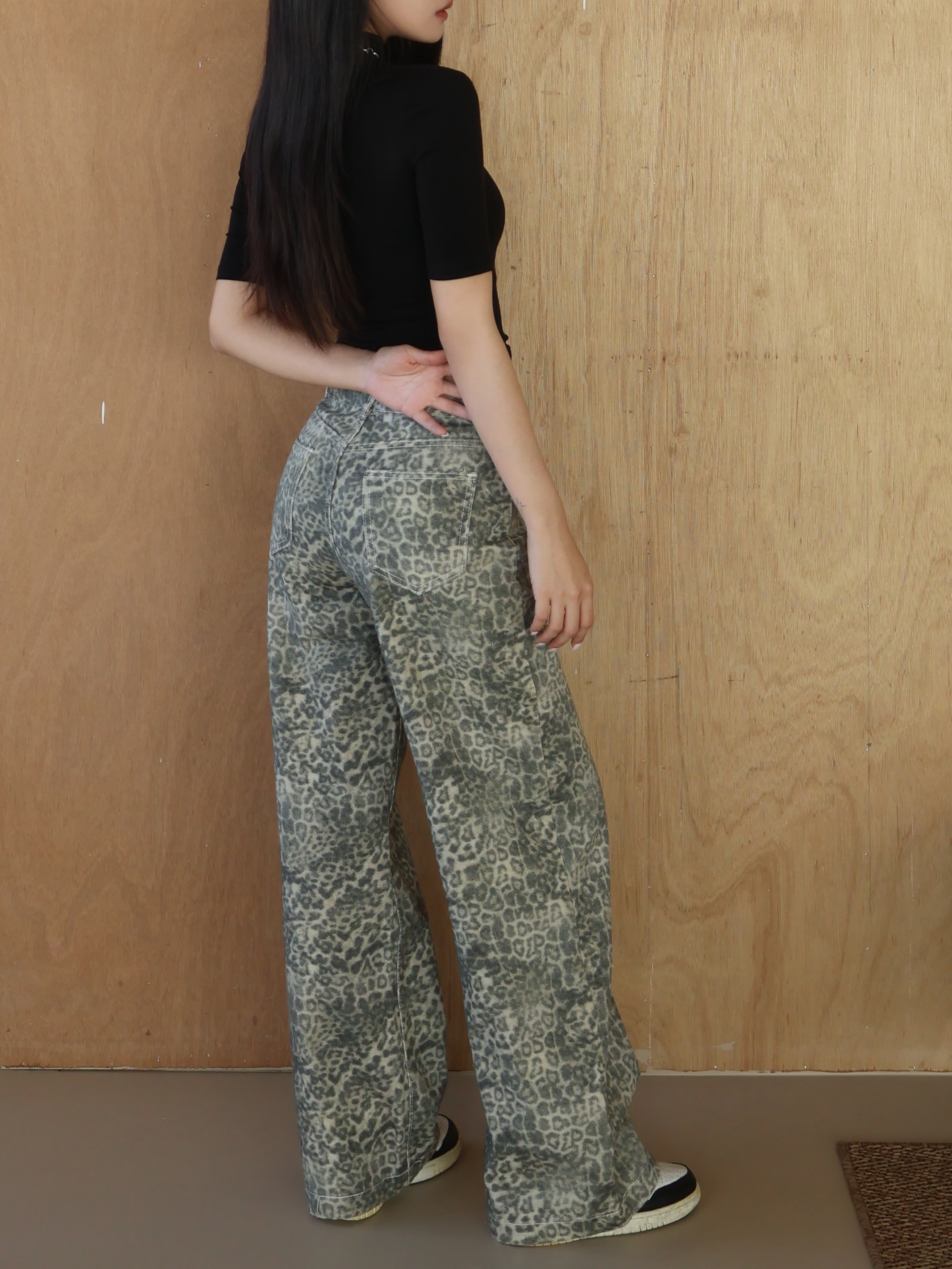 丹寧豹紋落地褲