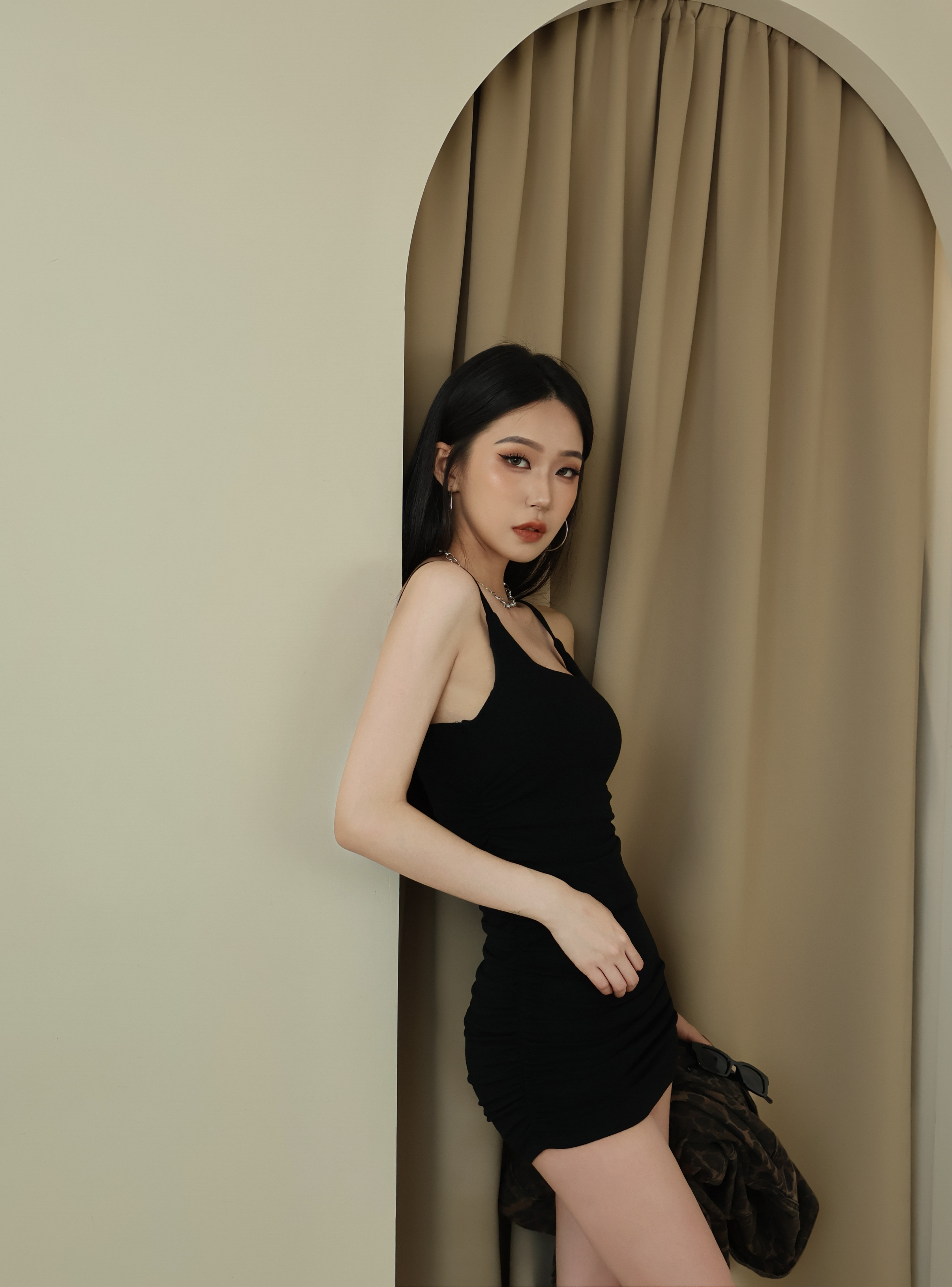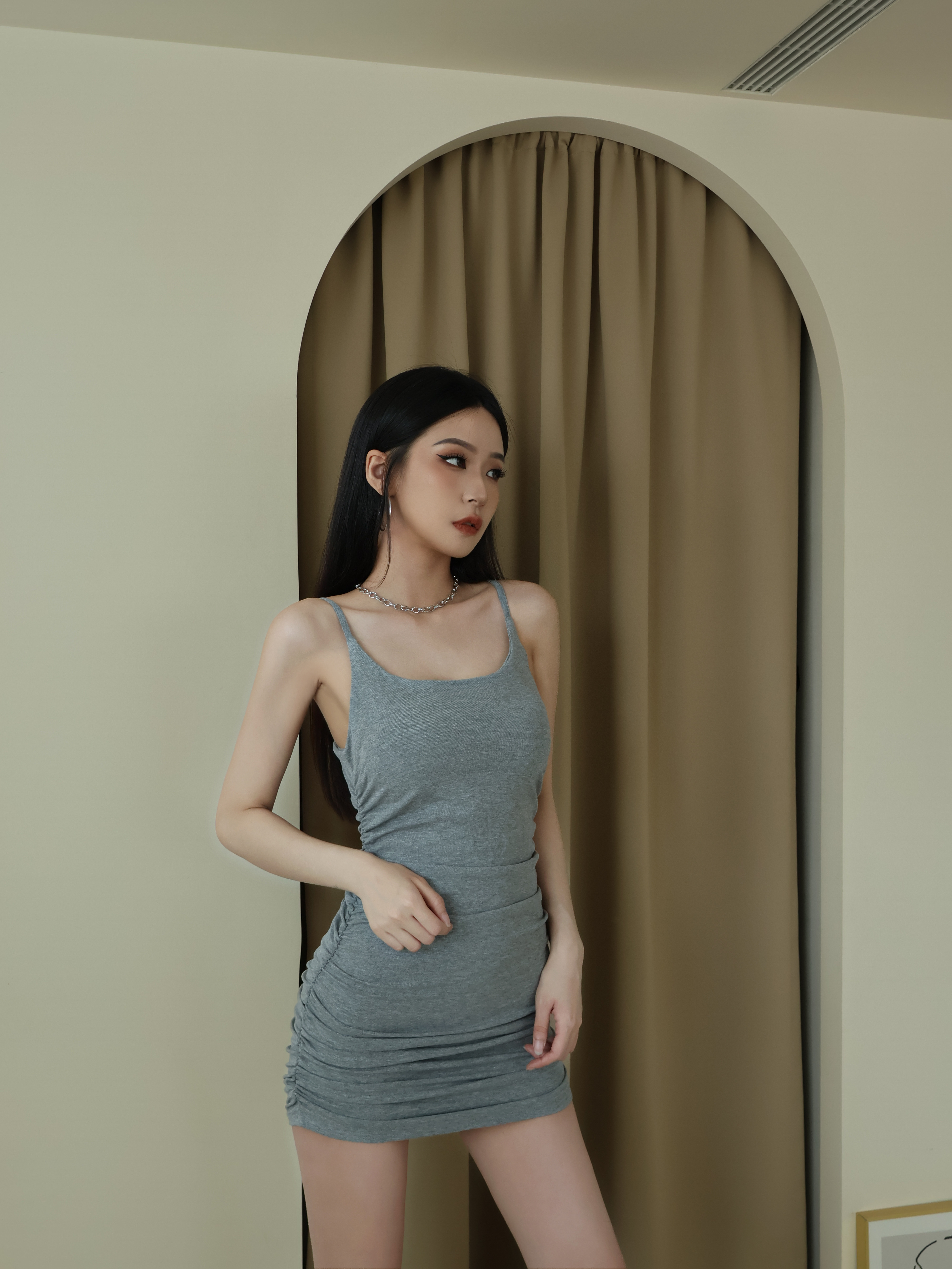 修身抓皺連身裙