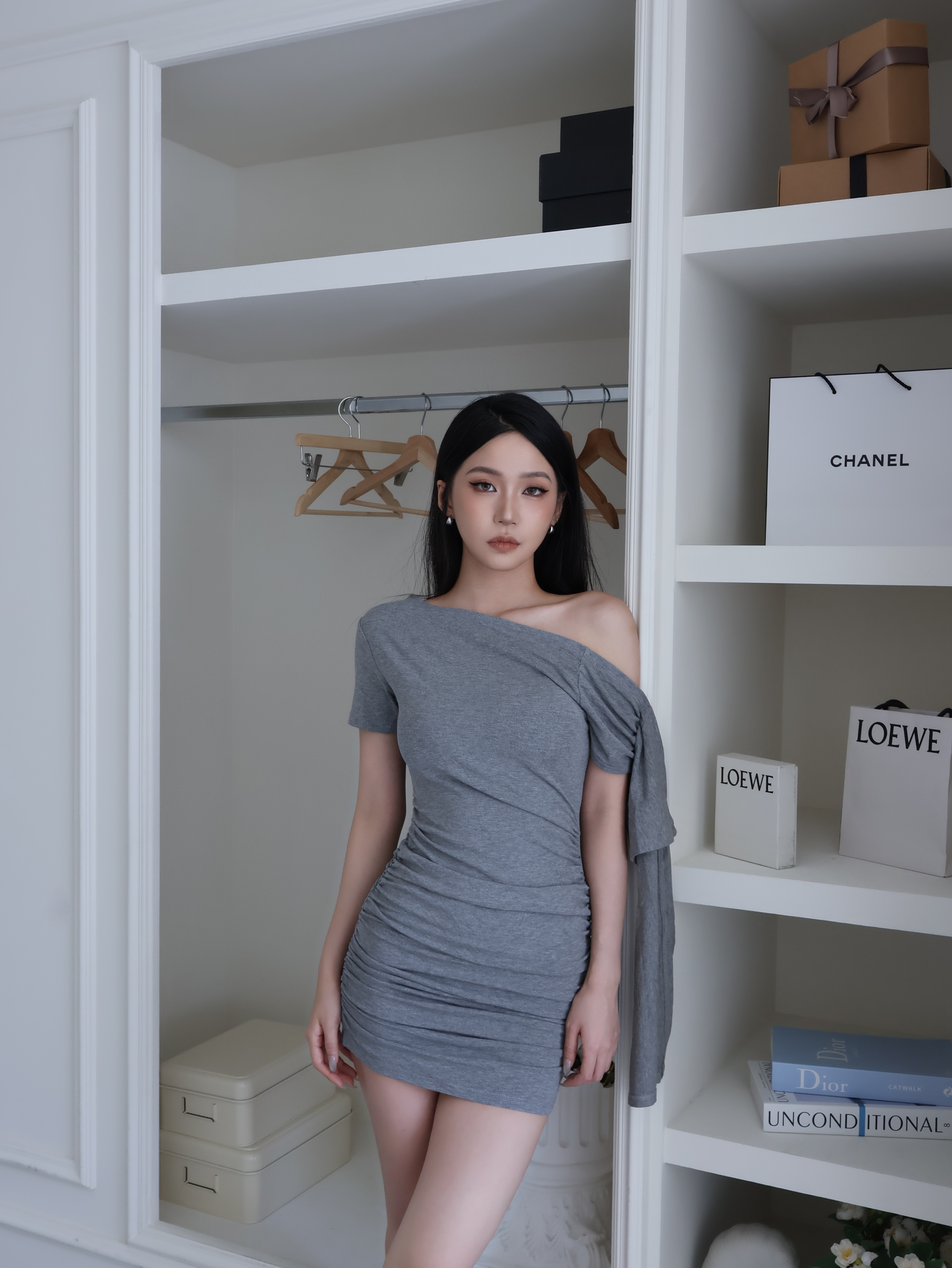 氣質斜肩短洋