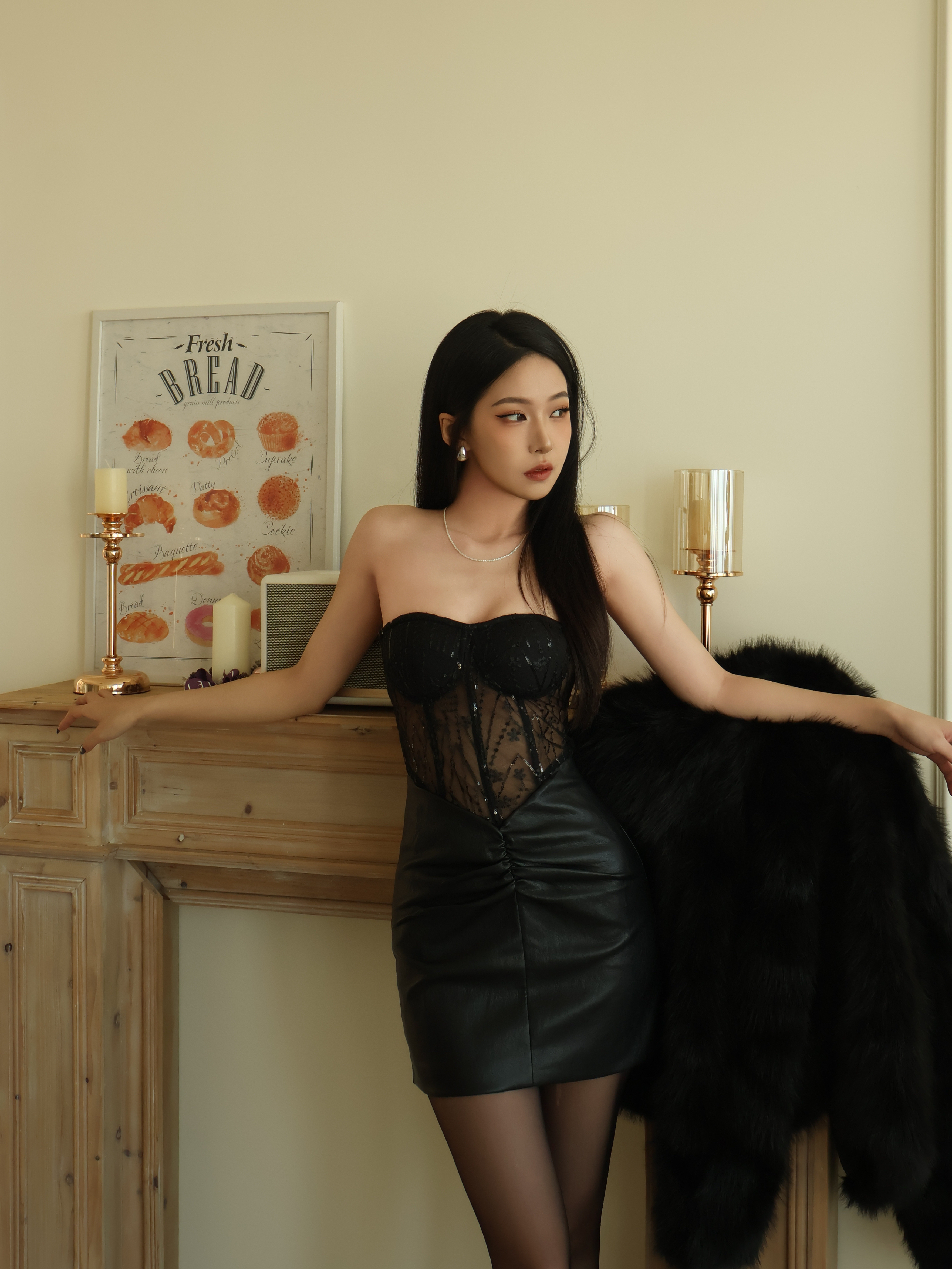 魚骨馬甲拼接短洋
